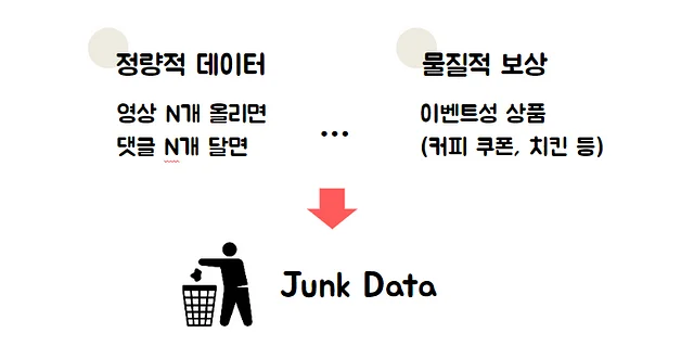 물질적 보상으로 참여율을 높일 수 있지만 오래가지 않습니다. ‘댓글을 N개 이상 남기면 커피 쿠폰을 드려요’와 같이 개수를 채워 보상받는 형태라면, 유의미한 참여를 기대하기 어렵습니다. 이렇게 쌓인 데이터는 흔히 *정크 데이터(Junk Data)가 되어 인사이트를 얻을 수 없고, 교육 효과도 떨어집니다.