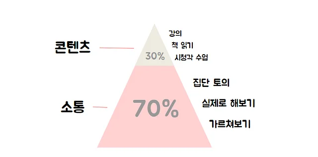 미국행동과학연구소(National Training Lab)에서 발표한 ‘학습 피라미드’ 연구 결과에 따르면, 효과적인 학습은 콘텐츠가 아닌 ‘소통’을 통해 이루어집니다.