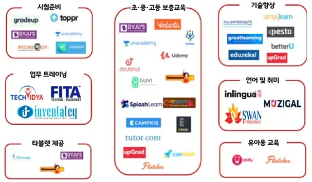 인도의 에듀테크 유니콘이 벌써 3개 기업 (바이주스, 업그래드, 언아카데미)이나 배출된 가운데, 3,600여 개 이상의 에듀테크 신생 기업들이 시장에 뛰어들고 있습니다.전체 유치원생 초중고교 학생수가 약 2억 6천여만 명으로, 한국의 600만 대비 약 43배에 이르는 거대 시장이니만큼(교육에 기술을 더하다, 인도의 미래산업 에듀테크 심층분석, KOTRA, 2021–06–08), 여기서 기회를 찾아 사업을 시작하는 이들도 많은 듯 합니다. 인도의 에듀테크 발전이 기대됩니다!