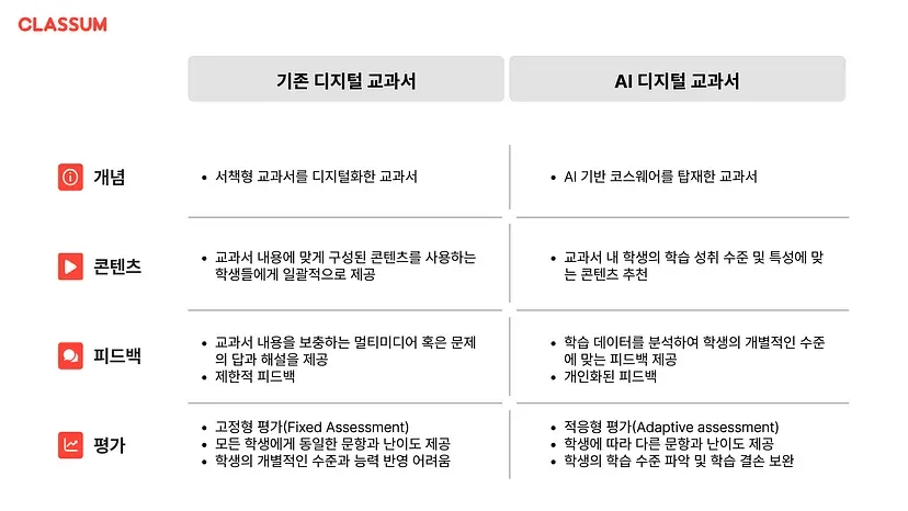 이처럼 AI 디지털 교과서는 맞춤형 교육을 실현하기 위한 핵심 요소로서, 기존 디지털 교과서와는 다양한 차이점을 가지고 있습니다.