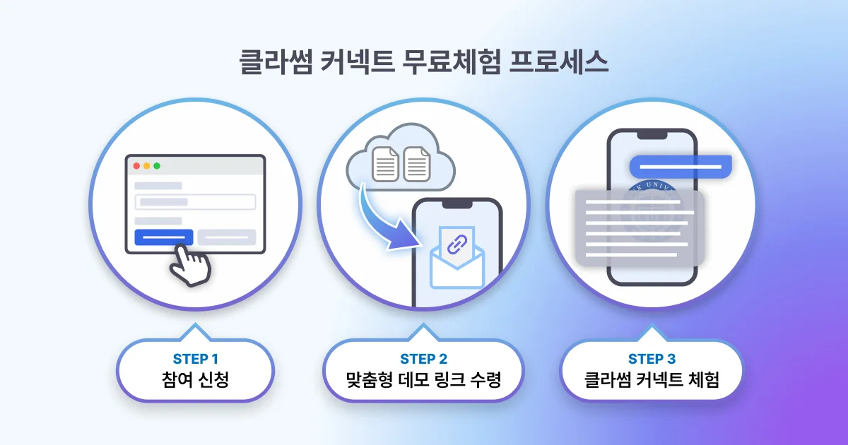 검증된 대학 맞춤형 AI 상담 챗봇, 클라썸 커넥트 무료체험으로 우리 대학의 AX의 첫 발을 내딛어보세요.