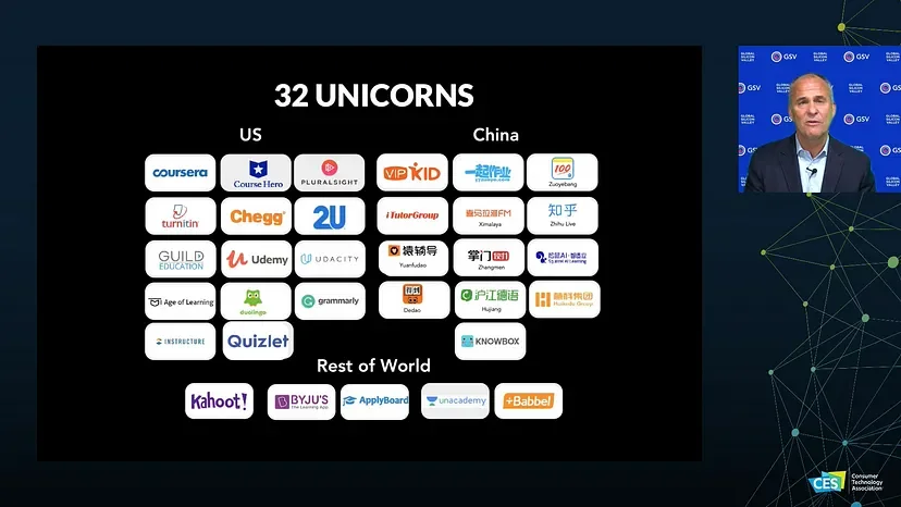 VC가 에듀테크 기업에 투자하는 금액 역시 크게 성장하였습니다. 2010년 50억 달러에 불과했으나 10년 사이 100억 달러로 늘어났으며, 최근 5년 사이 32개의 에듀테크 유니콘이 생겨났습니다.