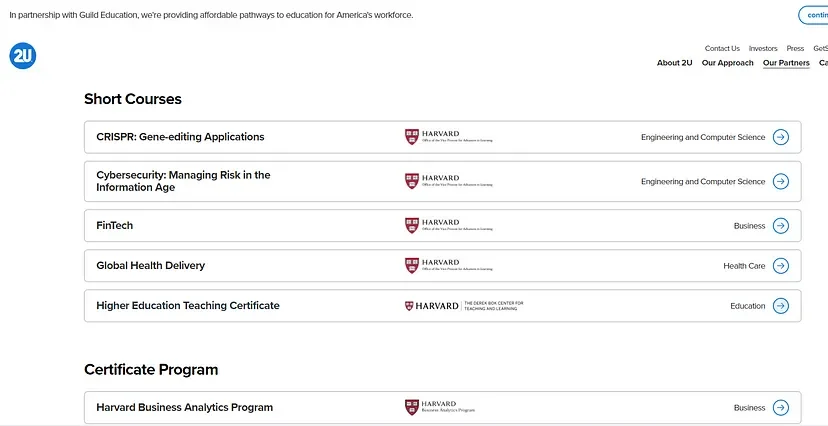 2U는 글로벌 에듀테크 기업으로 학·석사, 전문직 교육 프로그램, 부트캠프 서비스 등을 지원하고 있습니다. 이 중 오늘은 특별히 부트캠프 관련 이야기를 해보려 합니다. 현재 컬럼비아 대학에서는 학부 전공으로 컴퓨터 공학과가 있음에도, 2U에서 제공하는 웹 개발 부트캠프를 제공하고 있습니다.