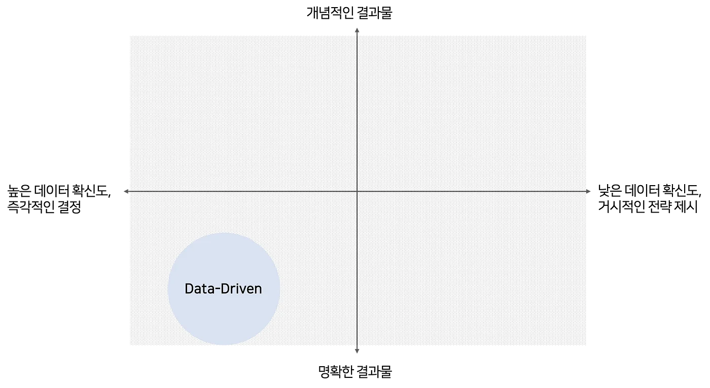 앞서 설명하였듯, Data를 활용한 접근법은 다양한 유형이 있으며, 유형별로 적용하는 것이 적절한 경우와 부적절한 경우가 구분되어 있습니다. 따라서, Data-driven만 외치는 것은 매우 단편적인 상황에만 해당하는 접근법을 일반화시키는 오류를 범하게 될 수 있습니다.