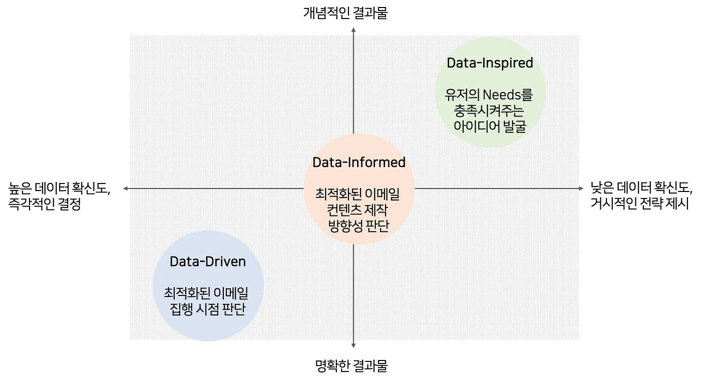 Data-informed 접근에만 노력이 집중되었다면, 관심을 유발하는 컨텐츠를 만들 순 있어도, 사람들이 잘 안 열어보는 시간대에 이메일이 발송되는 오류를 범할 수 있었겠죠.