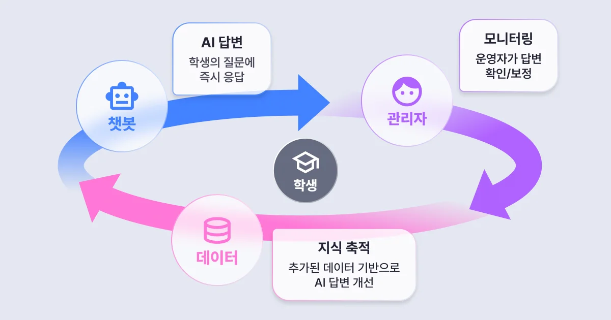 이와 같은 선순환 구조를 통해, 서울여대의 행정팀은 개발자 없이도 AI 챗봇을 지속적으로 똑똑하게 만들고 있으며, 반복되는 단순 민원 업무에서 벗어나 본래 업무, 또는 더욱 고차원적인 학생 상담에 집중할 수 있게 되었습니다.